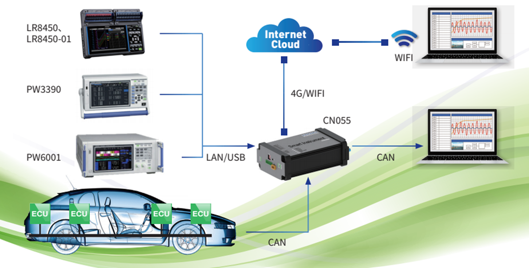 LAN-CAN转换器CN055,是一款以太网转CAN和数据采集记录功能的设备,能够将相关设备(PW6001、LR8450、PW3390)采集的数据通过以太网接收后转成CAN报文数据,也适用于作为监控CAN总线数据使用。