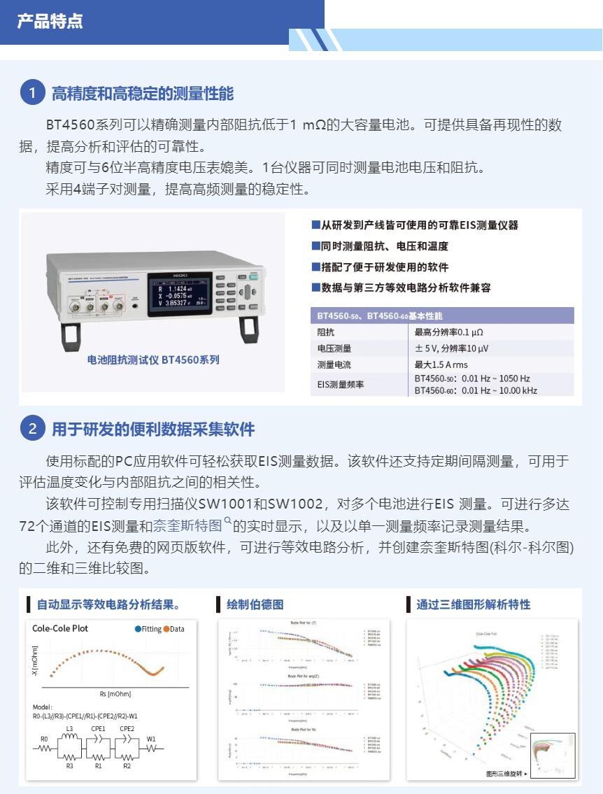 从研发到生产线,电池阻抗测试仪BT4560系列都能快速、轻松地进行EIS测试。此外,若增设扫描模块机架SW1001/SW1002,便可轻松扩展至多通道评估系统,从而实现多个电池的高精度EIS测量自动化与效率提升。同时,由于配备了LAN接口,搭建检查系统将更加便捷。