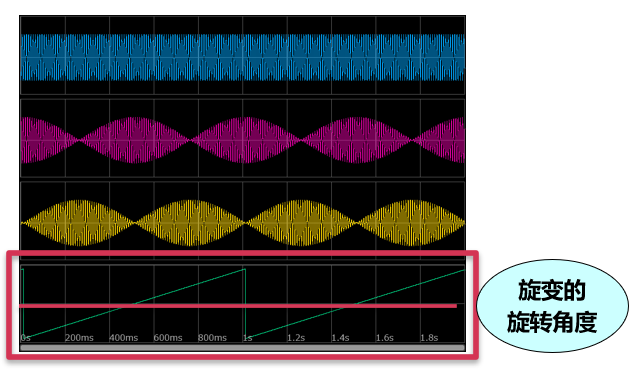 使用MR6000 的波形运算功能。设置励磁信号,cosθ、sinθ信号的波形运算公式后,求得电机的旋转角度。