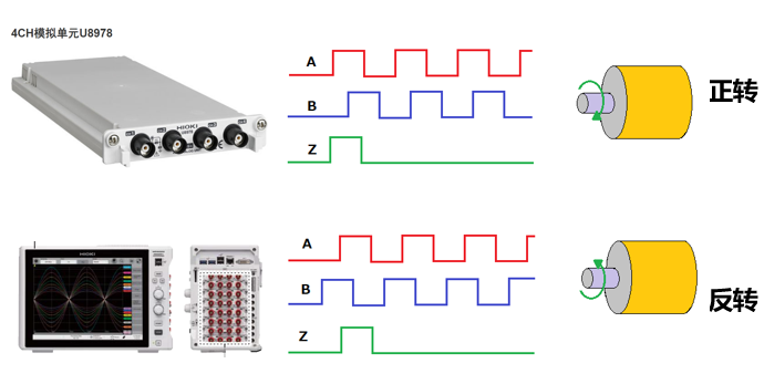 设置旋转编码器ABZ信号后,就能得到电机的转速、 旋转角度。